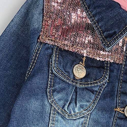 Peacolate 2-11Y Little & Big Girls Sequin Capispalla ricamo giacca di jeans, rosa, 7-8 Anni