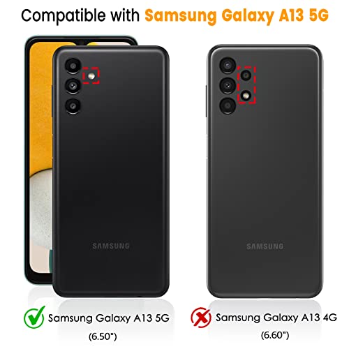 [Qualità Premium] -- L'esterno di questa cover Samsung Galaxy A13 5G è realizzato in pelle PU resistente che ha un buon tocco e la massima protezione contro lo sporco, antigraffio, antiurto e anti-caduta. L'interno è realizzato in TPU morbido per prendersi cura del cellulare perfettamente.