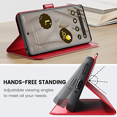 Peakally Custodia per Google Pixel 7A, Blocco del Segnale RFID, Cover a Libro in Pelle Premium, Custodia a Portafoglio [Slot per Schede] [Funzione di Supporto] [Magnete] - (Rosso)