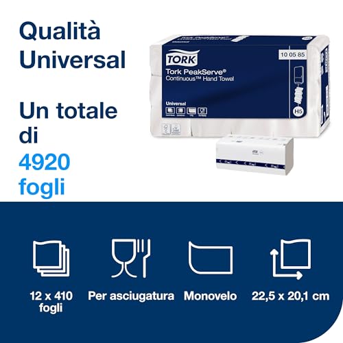 Tork PeakServe Universal 100585 - Asciugamani di carta H5 per dispenser di asciugamani - 1 strato, bianco - 12 x 410 asciugamani