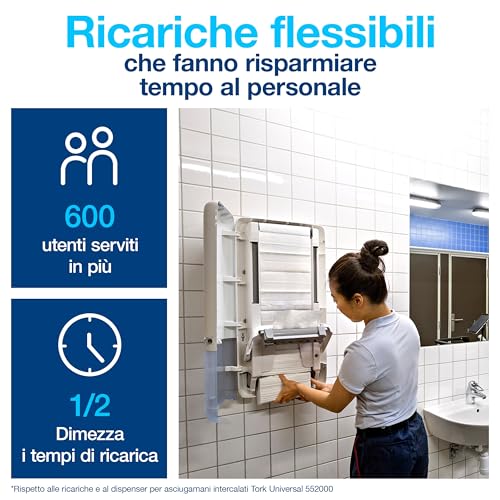 Meno controlli necessari per riempire i dispenser con fazzoletti piegati e compressi del 50% per una maggiore capacità.