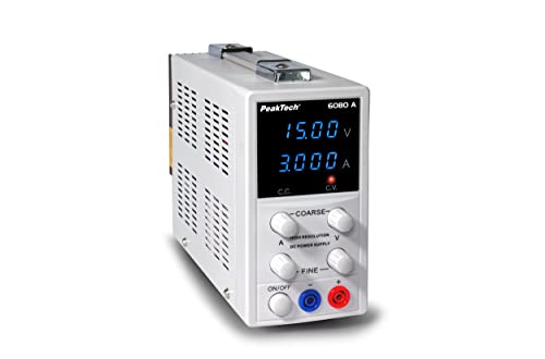PeakTech P 6080 A - Alimentatore di rete da laboratorio 0-15 V/0-3 A, ad alta risoluzione