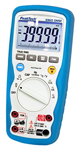 Peaktech P 3360 - Multimetro Digitale True Rms, Impermeabile, 40000 Conteggi, Tascabile Professionale, Tüv/Gs, Autorange, Misurazione della Corrente, Voltmetro, Tester di Continuità - Cat Iii 1000 V
