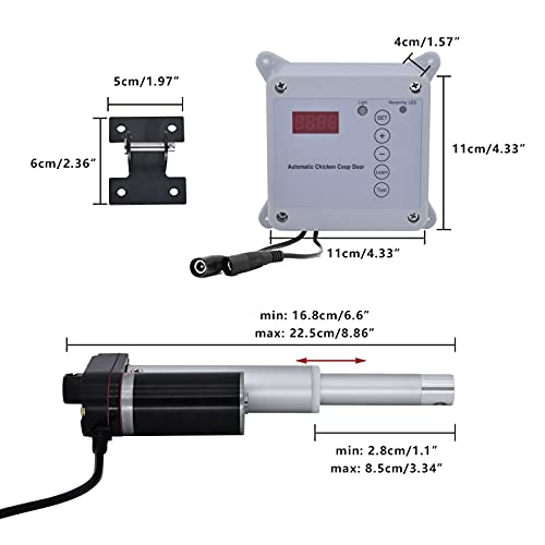 【Ampiamente usato】 - L'apriporta automatico del pollaio è ampiamente utilizzato all'aperto e al chiuso ed è adatto a tutte le porte a battente da 9 pollici a 39 pollici di larghezza, il peso di Coop Door non supera i 20 kg.