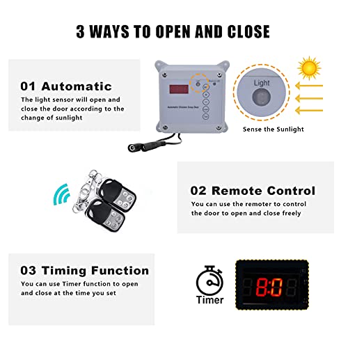 【Telecomando facile】 - L'apriporta automatico del pollaio viene fornito con due telecomandi inviati per un controllo comodo e gratuito della porta da solo. È molto comodo.