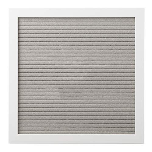 La lavagna ha lo sfondo in feltro grigio racchiuso in una cornice di legno bianco rifinita a mano.