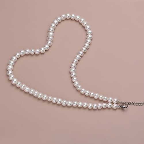 TAGLIA - 43cm + 3cm di lunghezza della catena, dimensione della perla a forma di bottone: 7-8mm. Queste collane di perle d'acqua dolce bianche sono perfette da indossare sia con abiti casual che formali.