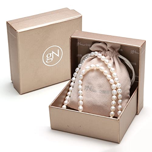 GN PEARL Collana di Perle, Girocollo di Perle Coltivate d'acqua Dolce Bianche a Forma di Riso, Regali per le Donne, Moglie, Mamma, Fidanzata, Uomo, Fidanzata, Uomini