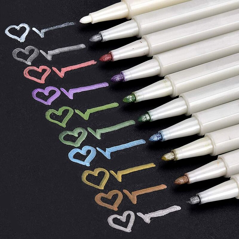 Colore metallico - - contiene inchiostro lampeggiante e particelle finemente macinate che possono fornire una lucentezza uniforme e uniforme a bellissimi biglietti di auguri o immagini per aggiungere colore ottico colorato, liscio - ben scritto sul lato, lì non cè spazio o bolle nellinchiostro. È comodo e sicuro: contiene particelle fini, inchiostri a base dacqua, colori, rispettosi dellambiente e non tossici. Anche se ci lavori, puoi assicurarti che questi aghi di metallo siano opachi, il che significa che coprono completamente la superficie sottostante. Linchiostro opaco crea un leggero contrasto con il colore e la carta scura. Può anche essere visualizzato metallo a base dacqua, vetro, plastica e molte altre superfici, non tossico per lambiente! Adatto a colori brillanti, foglie scure e nere! Adatto a diversi materiali di superficie: Carta, vetro, plastica, ceramica, pietra, ceramica, legno, possono essere utilizzati anche in cartone nero o altri materiali neri. gioca in modo