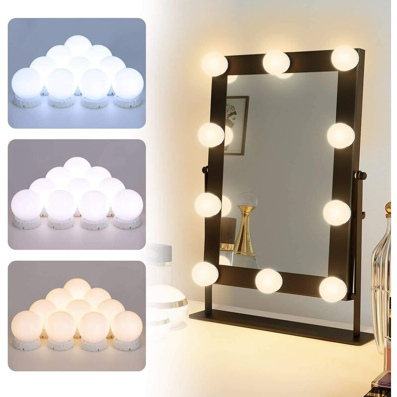 Illuminazione professionale per il trucco - Questa luce a LED ha 3 temperature di colore che forniscono effetti fluorescenti naturali e allettanti che conferiscono unaffascinante atmosfera hollywoodiana. Assicurati che il colore chiaro e la luminosità appropriata rendano il tuo trucco più naturale. Utilizzato non solo per lilluminazione dello spogliatoio, ma anche per spogliatoio, salone di bellezza, parrucchiere, ecc. [facile da installare] 10 lenti a specchio per il trucco a LED possono essere inserite direttamente sullo specchio o si lasciano cadere ovunque. La luce dello specchio a LED dispone anche di 14 cuscinetti biadesivi per rendere linstallazione più sicura. Plug and Play, puoi facilmente impostare la tua illuminazione per specchi di Hollywood in pochi minuti! Il cavo USB supporta più opzioni di ricarica. [Cavo nascosto dal design nascosto] La lente LED può essere avvolta attorno alla base secondo necessità per regolare la lunghezza sullo specchio. Puoi anche ottenere il