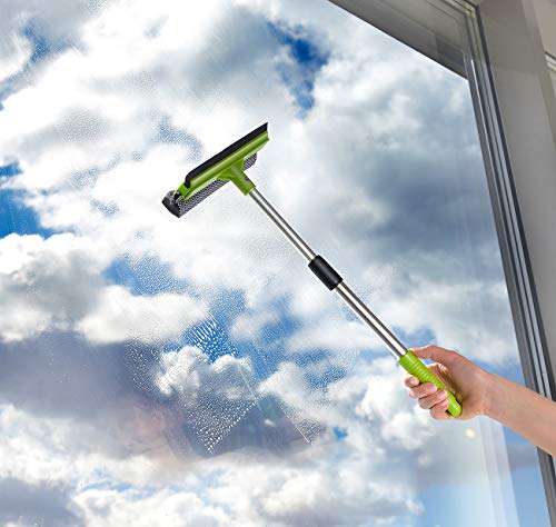 Ideale per finestre, Finestrini dell'auto, Porte in vetro e altre superfici lisce • Spugna per applicare l'acqua di lavaggio e sciogliere lo sporco • Labbro in gomma per una rimozione senza aloni • Lunghezza totale regolabile in continuo da 36 a 50 cm