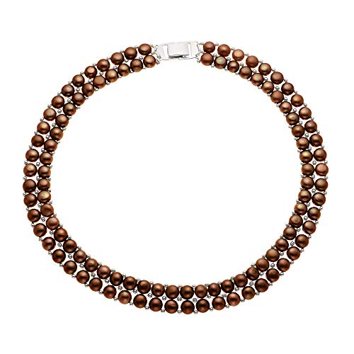 ⭐ Collana a 2 file, vera perla coltivata d'acqua dolce, 3-4 mm, colore cioccolato, qualità AAA+, lunghezza 42 cm, chiusura a cricchetto, elastico ad alta resistenza, garanzia 2 anni. Questo gioiello viene consegnato nella sua scatola preliminare. STIGE e accompagnato da Certificato di autenticità e garanzia internazionale PEARLS & COLORS
