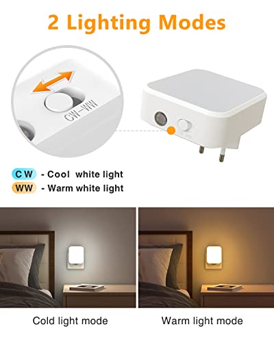 Peasur Luce Notturna LED, 【4 Pezzi】 Automatiche Luce Notturna con Sensore di Luci, Luce Notturna da Presa per Bambini, Camerette, Soggiorno, Corridoio, Bagno, Cucina, Scale Bianca Calda&Bianco Freddo
