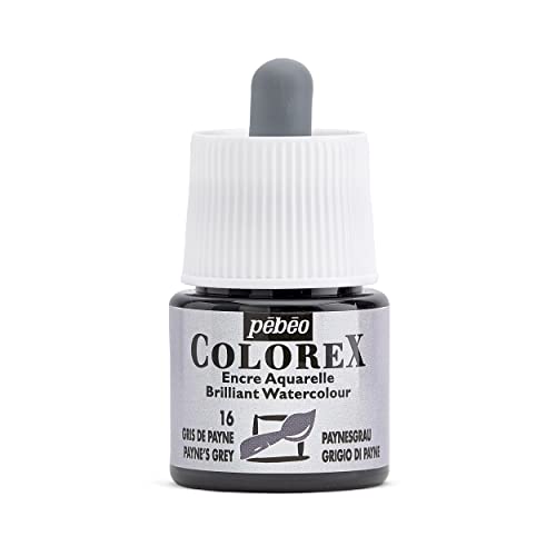 Pebeo - Colorex Ink 45 ML Grigio Payne - Colorex Acquerello Inchiostro Pebeo - Grigio Finitura Velluto Inchiostro - Multiuso Inchiostro da Disegno Tutti i Media - 45 ML - Grigio Payne