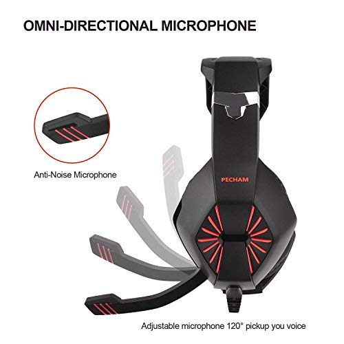 PECHAM PS4 Gaming Headset, Cuffie per PC con Microfono per PS4, PC, Xbox One, Nintendo Switch, Laptop e Smart Phone, riduzione del Rumore Easy Volume Control