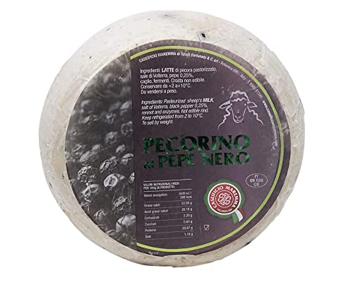 ✅Ha una stagionatura di trenta giorni, la crosta bianca costellata di pepe racchiude al suo interno una struttura ben equilibrata con un aroma elegante e saporito;