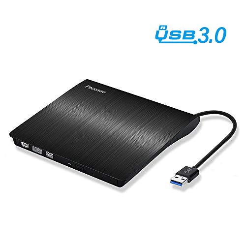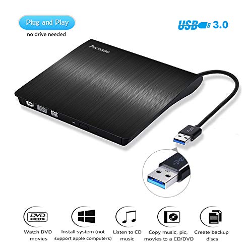 Pecosso esterna CD/DVD Drive USB 3.0, Portable Slim CD/DVD-RW, nero Nero