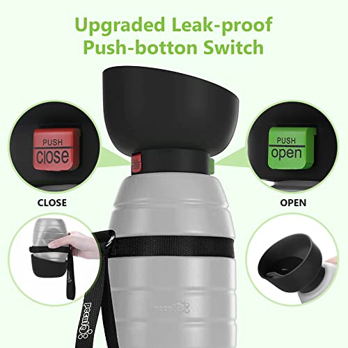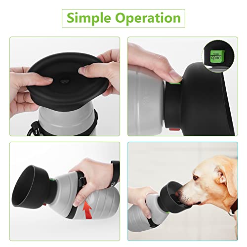 Facile da usare: ruotare la ciotola pieghevole verso l'alto, premere il pulsante verde "open", premere la bottiglia, è possibile rilasciare rapidamente l'acqua per il vostro animale domestico;