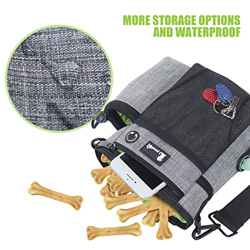 【CARATTERISTICHE】1. Forniamo una comoda tasca con cerniera per fissare il telefono o le chiavi, e la tasca esterna a rete può contenere tutti gli altri oggetti. 2. Supporto per il sacchetto dello sgabello in gomma morbida: Il nostro sacchetto per snack per cani è dotato di un dispenser per sacchetti della spazzatura incorporato nel lato, progettato su misura, che è più facile e più conveniente per estrarre il sacchetto della spazzatura rispetto a quelli di altri concorrenti.