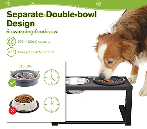 Pecute Ciotole per Cani Rialzate, Ciotola Cane con Supporto Regolabile Altezza, Ciotola Doppia Rialzata per Cani per Ciotola per Mangiare Lentamente + Ciotola per L'acqua, Facile da Pulire,L