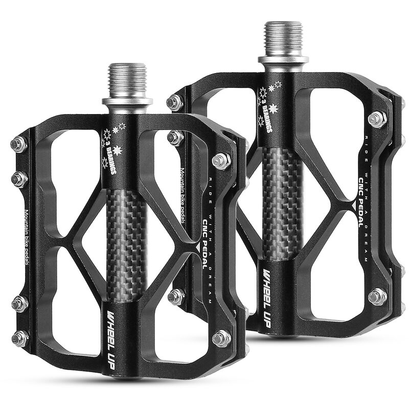 Questa coppia di biciclette e un ottimo accessorio per il tuo viaggio in bicicletta. Caratteristiche: Realizzato in lega di alluminio di alta qualita, solido e resistente, di lunga durata. Pedale con cuscinetti ultraleggero, taglio one-shot CNC, piu bello ed elegante. La struttura a tre cuscinetti lubrificata consente al pedale di funzionare facilmente e liberamente. Dimensioni compatte con costruzione robusta, alta intensita e resistenza alla corrosione. Il pedale e progettato con un cuscinetto sigillato che e pratico e impedisce l'ingresso di polvere. Adatto per gli amanti della bicicletta. Specifiche: Materiale: lega di alluminio 6061 + fibra di carbonio Adatto per: Mountain Bike Dimensione articolo: 10 * 8,5 * 2 cm / 3,9 * 3,3 * 0,8 pollici Peso dell'articolo: 287 g / 10,1 once Elenco dei pacchetti: 1 * paio di pedali per bicicletta