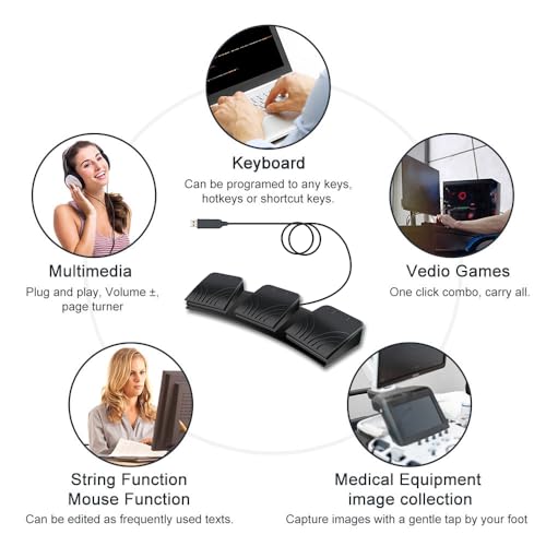 Interruttore a tre pedali: aggiornato con pedale largo, interruttore ottico e interruttore a pedale USB è un dispositivo HID standard e tastiera e mouse programmabili attivati dal piede. L'interruttore ottico è silenzioso e si preme leggermente.