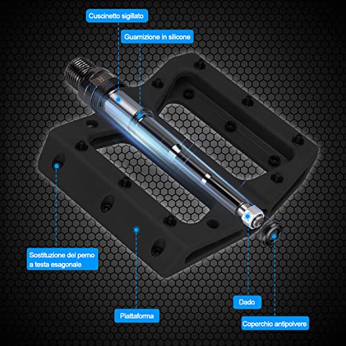 Pedali per mountain bike in lega di alluminio piatto 9/16" pedale per BMX/MTB (Nylon)