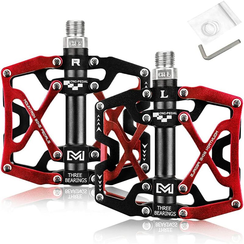 SUPER MATERIALE - Il pedale della bicicletta è realizzato con precisione in alluminio CNC, l'intero corpo del pedale è premuto in un unico pezzo, prolungando notevolmente la durata del prodotto. La superficie anodizzata previene l'ossidazione e migliora la resistenza ai graffi. 【AMPIA PIATTAFORMA】 Questi pedali per bici forniscono più supporto per il piede con una dimensione di 10,5 cm x 9,1 cm;