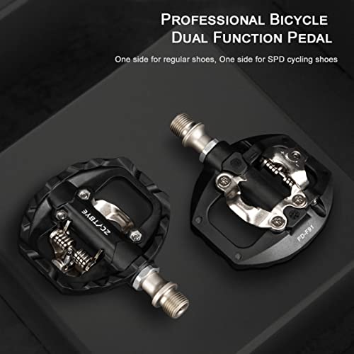 Pedale multiuso: Questo pedale è un pedale per bicicletta a doppia faccia, da un lato ha un design SPD clipless per l'uso con scarpe da bicicletta SPD, dall'altro lato ha un pedale piatto tradizionale per l'uso con scarpe normali. Puoi cambiarlo come preferisci. È molto comodo e pratico per principianti e pendolari. Gli accessori per i pedali includono un paio di tacchetti SPD.