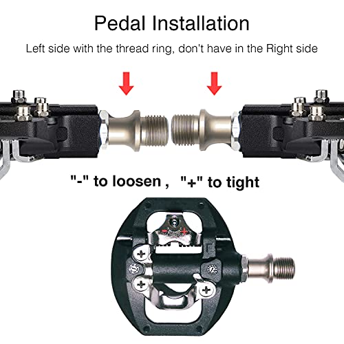 CR-R per la destra.Filettatura standard 9/16" adatta alla maggior parte delle mountain bike, peloton, touring, commuting bike enduro, freeride e downhill.Il pacchetto include 1 chiave esagonale, 1 coppia di pedali, 1 coppia di tacchetti, 4 viti e 2 rondelle.