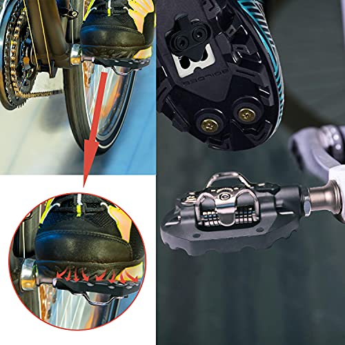 【Design scientifico】La regolazione della tensione permette all'utente di avere un punto dolce per un facile clipping dentro e fuori.Il design aperto del binding permette al fango e ai detriti di essere sciacquati fuori.La clip aerodinamica è formata da una fusione di alluminio e progettata secondo la struttura meccanica. Migliorare la stabilità di guida e aumentare l'efficienza del timbro.