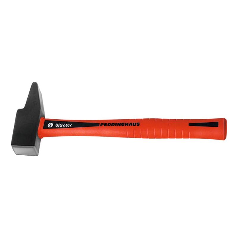 Forgiate, temprate e rinvenute. Testa verniciata, superficie battente e penna lucide. Con manico in fibra di vetro “Ultratec”, infrangibile. Materiale: Acciaio speciale per utensili. Dati tecnici Antiscintilla no Tipo di prodotto Martello Lunghezza manico, mm 260 Peso senza manico, g 200 Lunghezza testina L, mm 75 Altezza superficie battente H, mm 25