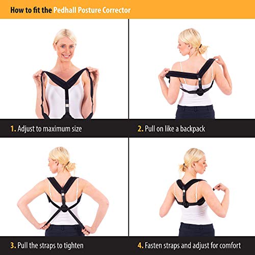 Pedhall - Correttore posturale + fascia elastica per uomini e donne, supporto per schiena, spalle, clavicola, sollievo dal dolore, comodo, discreto, universale e regolabile, fisioterapia domestica o di lavoro