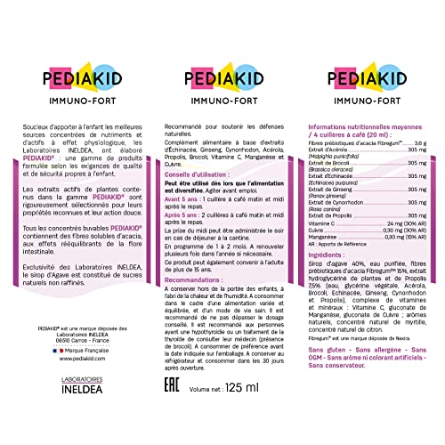 PEDIAKID - Integratore Alimentare Naturale Immuno-Forte - Formula Esclusiva allo Sciroppo d'Agave - Aiuta a Sostenere le Difese Naturali dell'Organismo - Gusto Mirtillo - Flacone da 125 ml