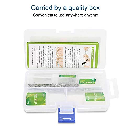 SET DI STRUMENTI: Questo prodotto contiene quattro diversi strumenti di pedicure, che svolgono ruoli diversi.La patch per unghie può essere incorporata nelle unghie che devono essere corrette.La colla per unghie è un cerotto fisso dopo l'inserimento del cerotto nelle unghie.Il detergente per colla può pulire la colla per unghie, rimuovere facilmente il cerotto, lucidare il file per lucidare le unghie e rendere liscia la superficie dell'unghia. Il bastoncino può essere usato per tenere premuto il