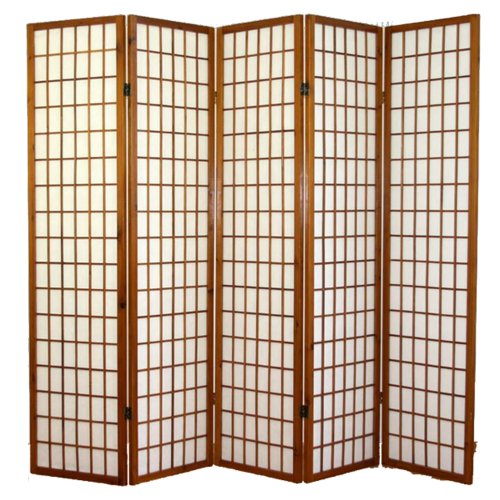 PEGANE Paravento giaponese Shoji in Legno Marrone Scuro di 5 Pannelli