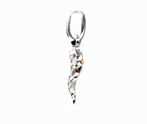 PEGASO GIOIELLI Ciondolo Oro Bianco 18kt (750) Pendente Piccolo Corno Cornetto Portafortuna Mini Charms Uomo Donna Bambini