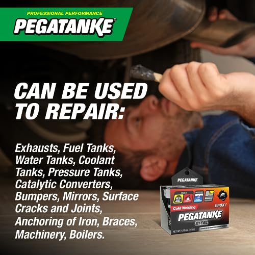 PEGATANKE EPOXICO ACCIAIO NERO 32 GR. Colla epossidica bicomponente, per qualsiasi materiale, colore grigio con trucioli di acciaio, alta resistenza, colla a bassa acqua, kit 34 grammi.