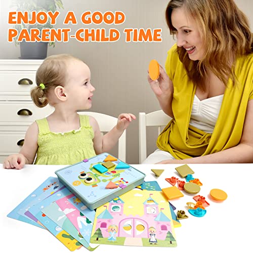 【Giocattoli creativi con pannello forato】: inizia abbinando e agganciando il puzzle / blocco di forma geometrica alle carte modello illustrate per completare l'immagine, quindi passa alla creazione di disegni unici utilizzando solo il pannello forato a mosaico! Lascia che i tuoi bambini abbiano il tempo dell'immaginazione.