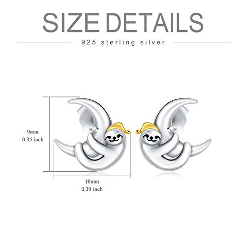 PEIMKO Bradipo Orecchini a perno in argento Sterling 925 con grazioso bradipo simpatico ciondolo a forma di animale per donne e ragazze, Argento