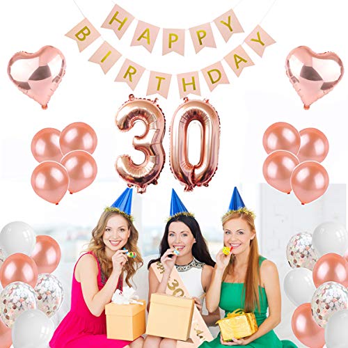 Peipong, decorazione per 30 anni, decorazione di compleanno per ragazze, palloncini in oro rosa, decorazione per festa di compleanno, per i 30 anni