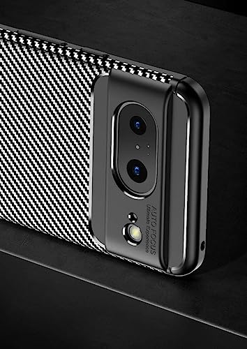 PEIYE Cover per Google Pixel 8, Silicone TPU Custodia [ Fibra di Carbonio ] -Nero