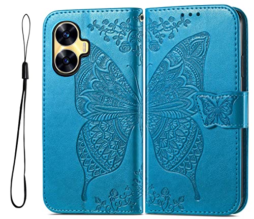 PEIYE Cover Pelle per Realme C55, Portafoglio PU Pelle Slot Schede, Custodia Cavalletto Stile Libro Chiusura Magnetica, Flip Case,Blu