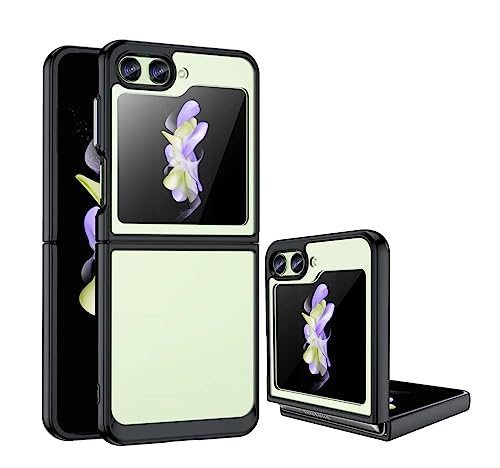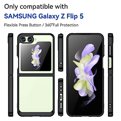 PEIYE Cover per Samsung Galaxy Z Flip5 5G, Custodia Protezione Paraurti in TPU Morbido Silicone Antiurto + Trasparente Rigida PC Retro (Nero)