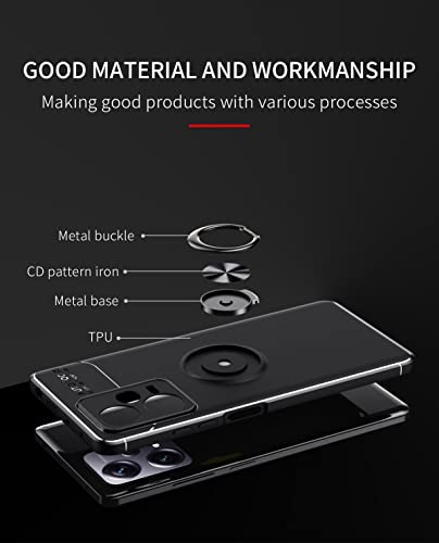 PEIYE Cover per Xiaomi Redmi Note 12 PRO 5G, Silicone TPU Custodia con Calamita Supporto (Anello) Dietro -Nero/Nero