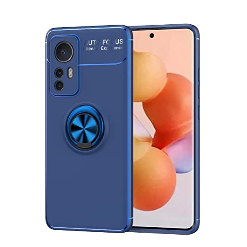 PEIYE Cover per Xiaomi Mi 12X / Xiaomi Mi 12 (6.28"), Silicone TPU Custodia con Calamita Supporto (Anello) Dietro -Blu/Blu