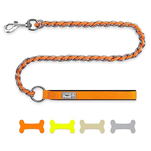 Pejoye Guinzaglio Addestramento per Cani 1m Lungo Robusto Resistente Catena Metallo in Nylon con Comoda Manico in Mpugnatura in Schiuma di Nylon per Taglia Grande Media e Piccola Cane (Arancia)