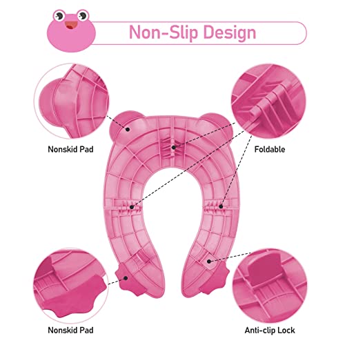 Pejoye Riduttore WC Viaggio, Baby Riduttore WC Pieghevole Bambino Sedile WC Bambino Riduttore, Viaggio Sedile Pieghevole WC con 1 Borsa per il Trasporto, Rana Rosa