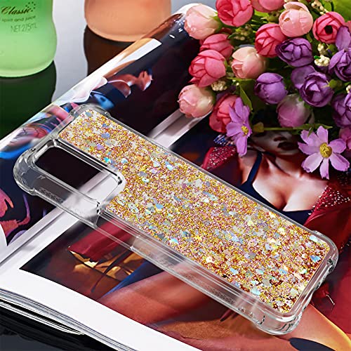 PekaTech Custodia per Cellulare con Corda per Oppo A54 5G / Oppo A74 5G Case, Liquido Sabbie Mobili Bumper TPU Cover con Collana Practical Stylish/Necklace Cordoncino Cordino Tracolla, Oro