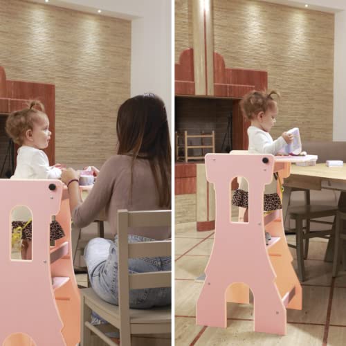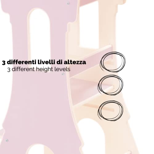 Pekiedo Learning Tower in Legno Realizzata in Italy Sgabello Comodo per Bambini Torretta per apprendimento con 3 Diversi Livelli di Altezza 100% Legno Naturale